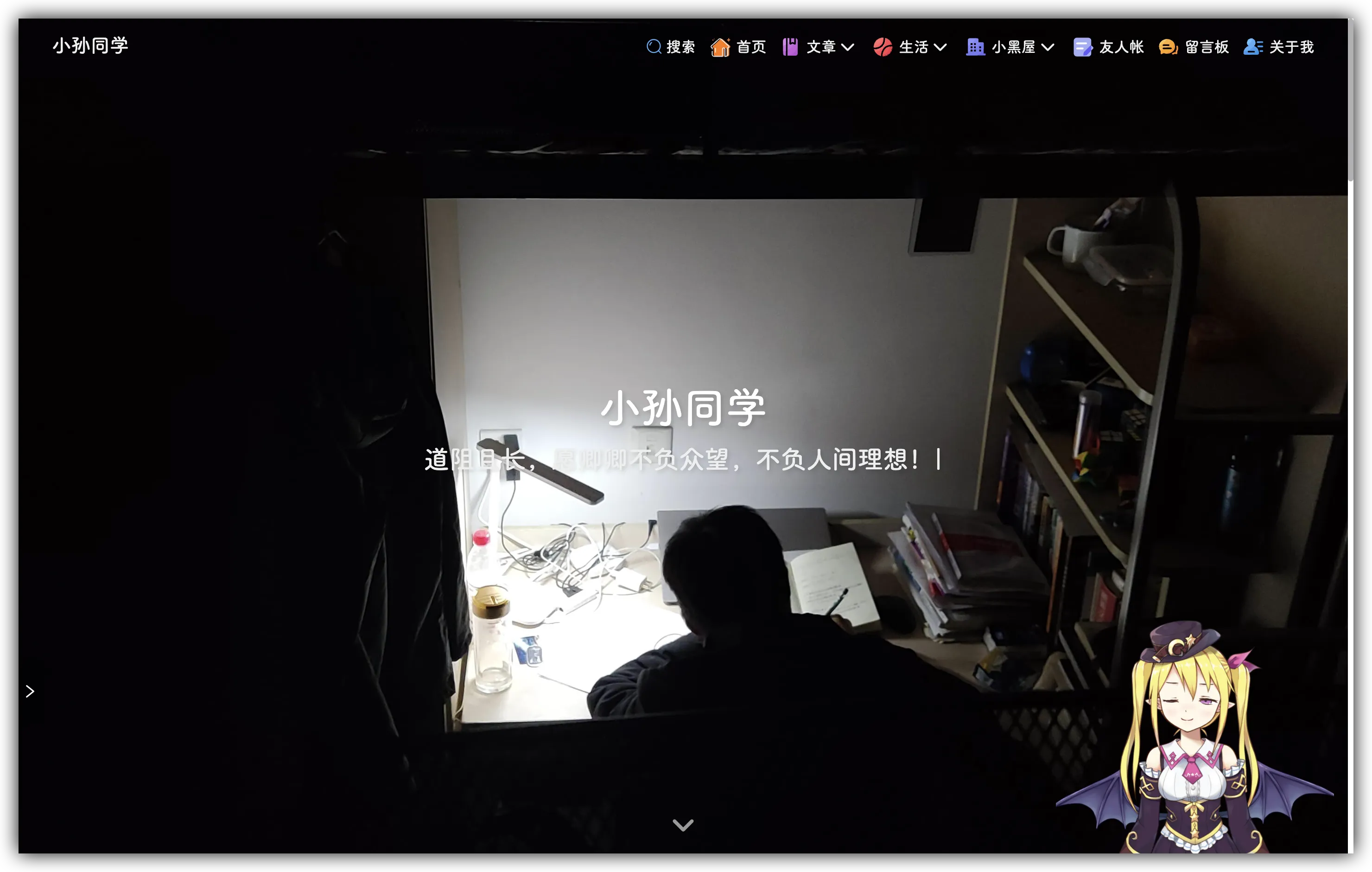 后来,我开始折腾个人博客,零基础的我花了几天时间搭建了一个基于 Hexo + Github 的静态博客站点。经过一番魔改,最终鼓捣成了下面这个样子。