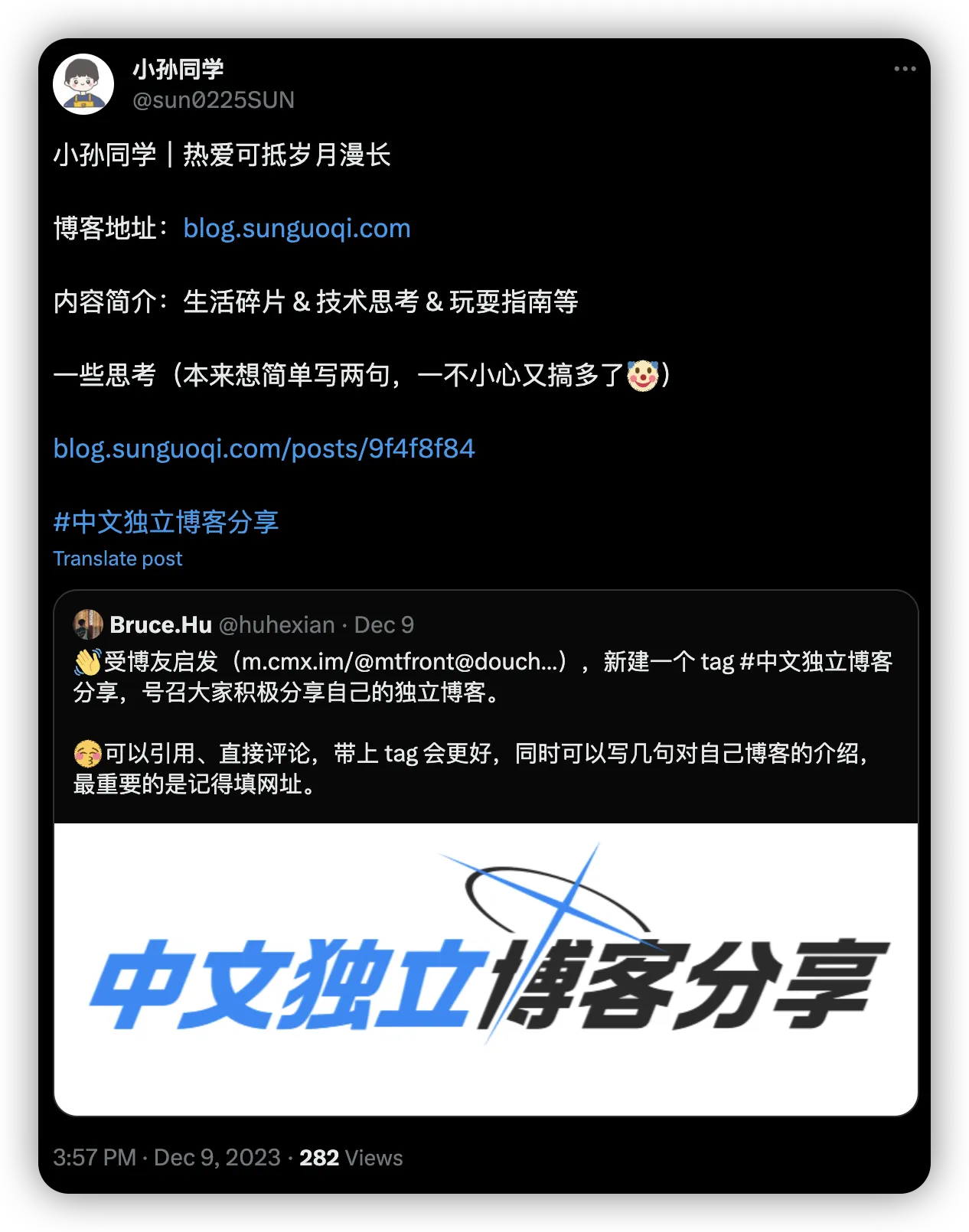 我是小孙同学,「中文独立博客」,欢迎各位博主交换友情链接~